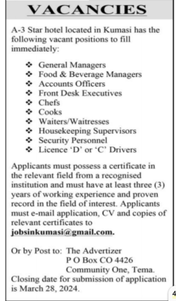 Prospective job seekers can find below the advertised jobs in the March 7, 2024, edition of Daily Graphic as published in the paper today.