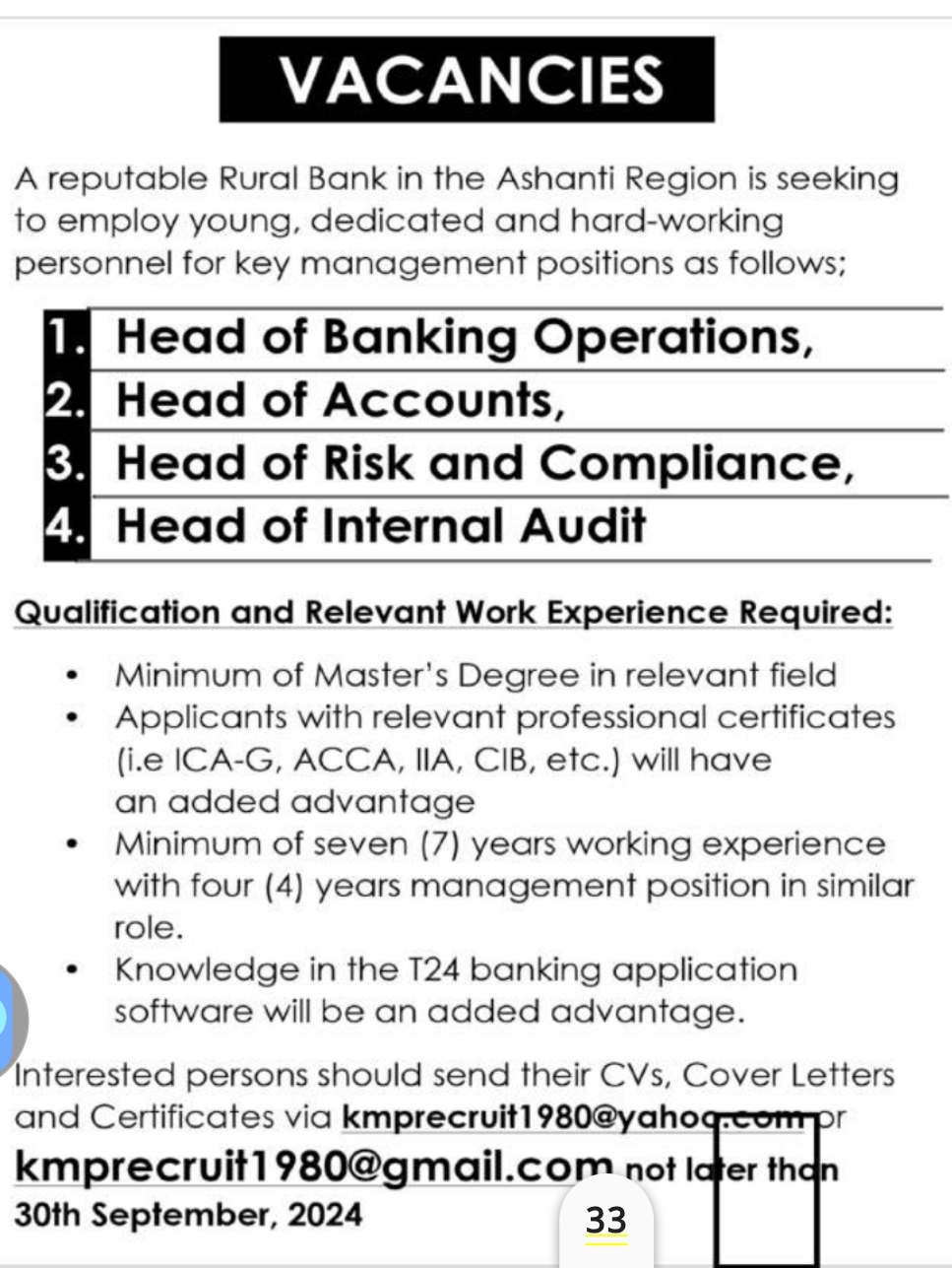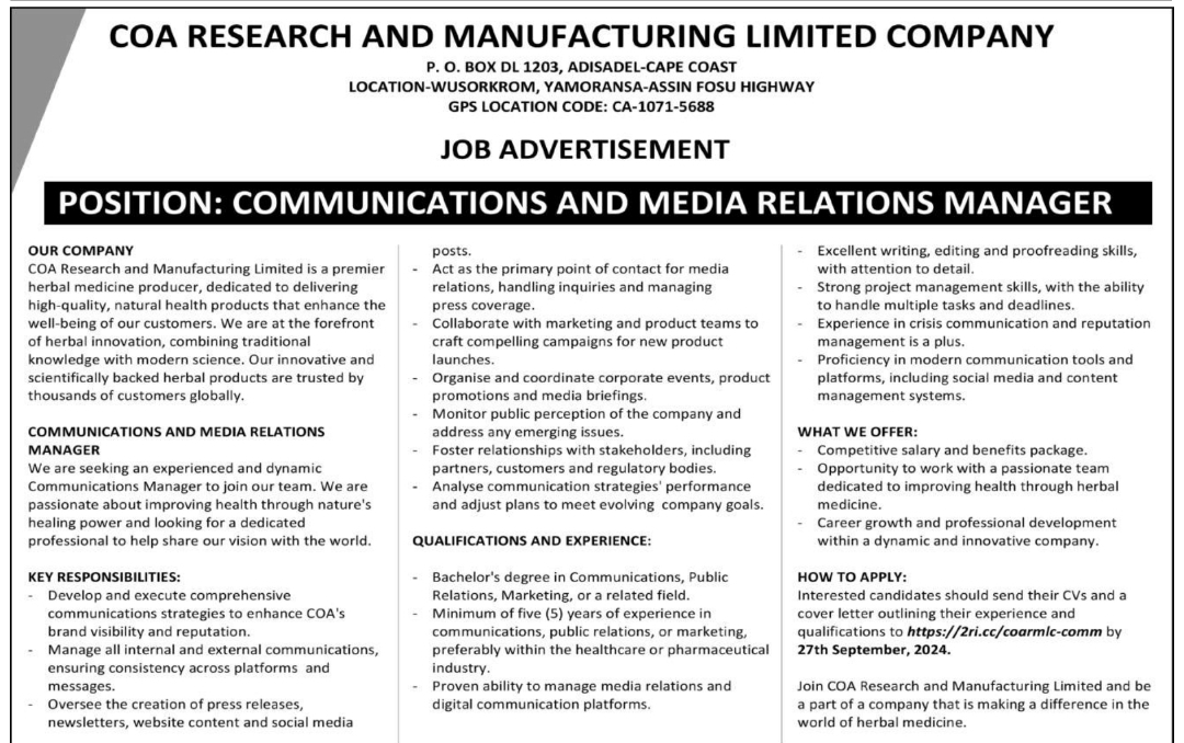 Prospective job seekers can find below the advertised jobs in the September 12, 2024, edition of Daily Graphic as published in the paper today.