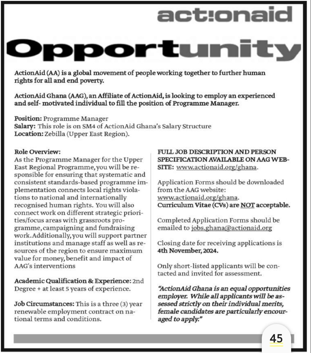 Prospective job seekers can find below the advertised jobs in the October 24, 2024, edition of Daily Graphic as published in the paper today.