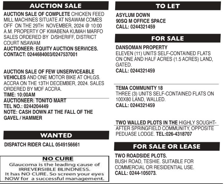 Prospective job seekers can find below the advertised jobs in the November 28, 2024, edition of Daily Graphic as published in the paper today.
