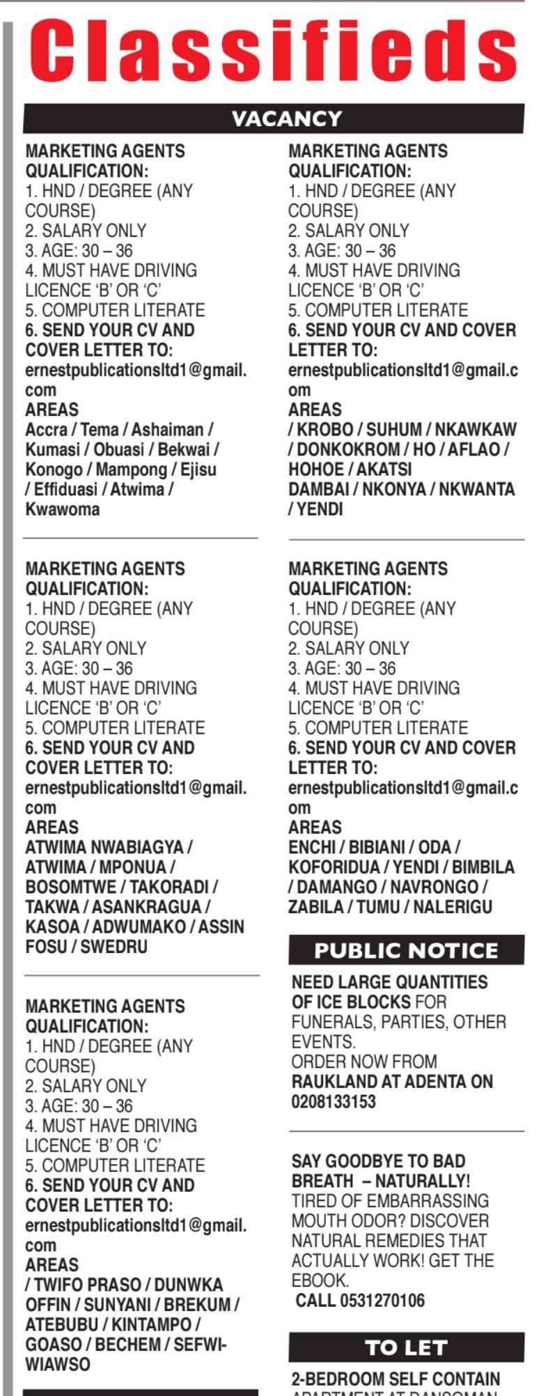 Prospective job seekers can find below the advertised jobs in the March 13, 2025 edition of Daily Graphic as published in the paper today.