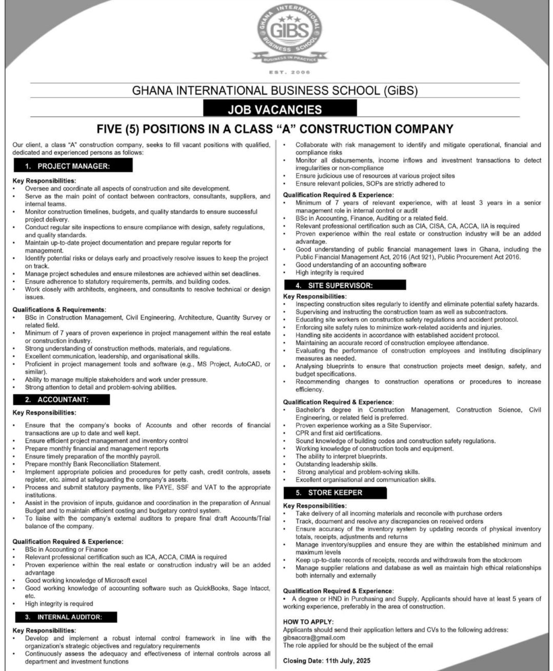 Prospective job seekers can find below the advertised jobs in the July 3, 2025, edition of the Daily Graphic as published in the paper today.