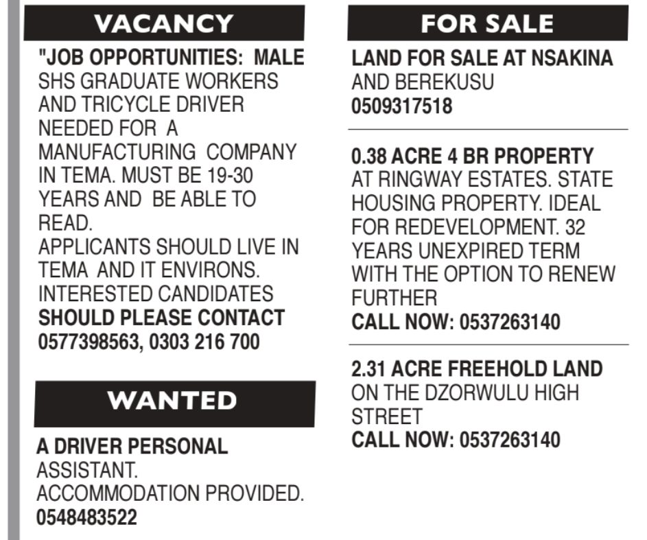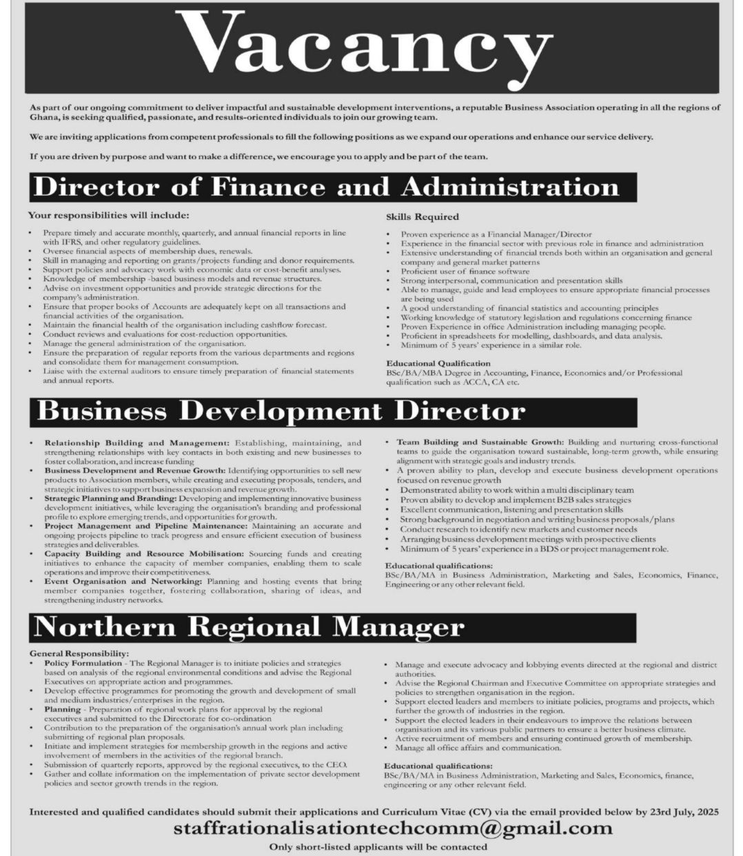 Prospective job seekers can find below the advertised jobs in the July 17, 2025, edition of the Daily Graphic as published in the paper today.