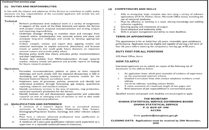 Prospective job seekers can find below the advertised jobs in the November 5, 2020 edition of Daily Graphic as published in the paper today.
