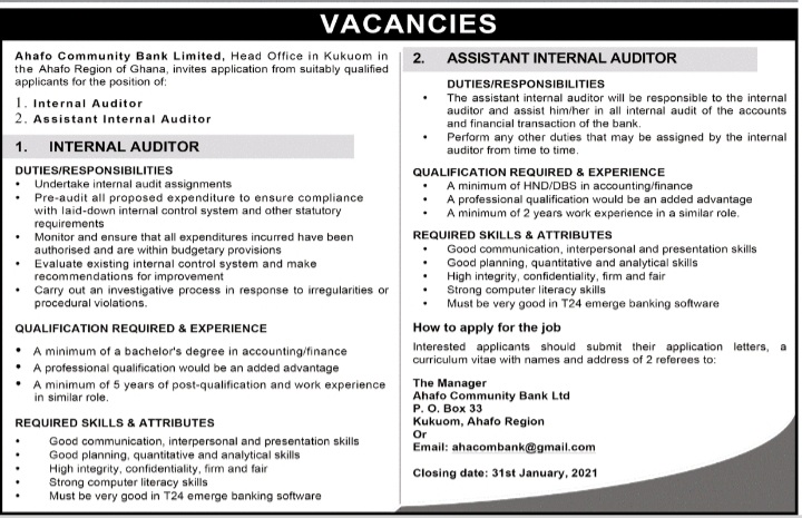 Prospective job seekers can find below the advertised jobs in the January 7, 2021, edition of Daily Graphic as published in the paper today.