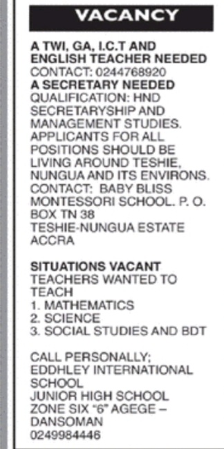Prospective job seekers can find below the advertised jobs in the February 11, 2021, edition of Daily Graphic as published in the paper today.