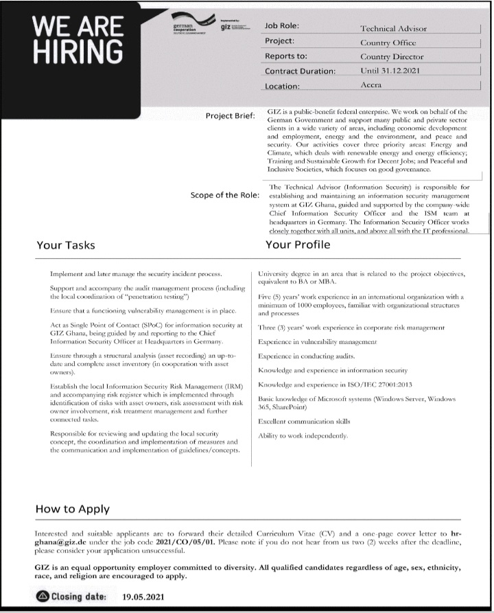 Prospective job seekers can find below the advertised jobs in the May 6, 2021, edition of Daily Graphic as published in the paper today.