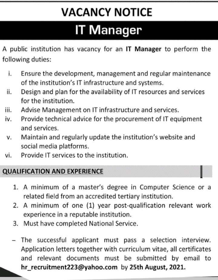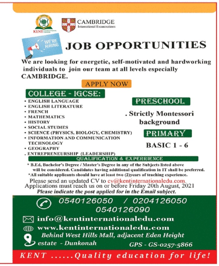 Prospective job seekers can find below the advertised jobs in the August 12, 2021, edition of Daily Graphic as published in the paper today.