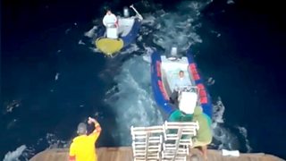 Watch: Sea conditions that night can be seen in this video of the Sea Story crew retrieving a small inflatable