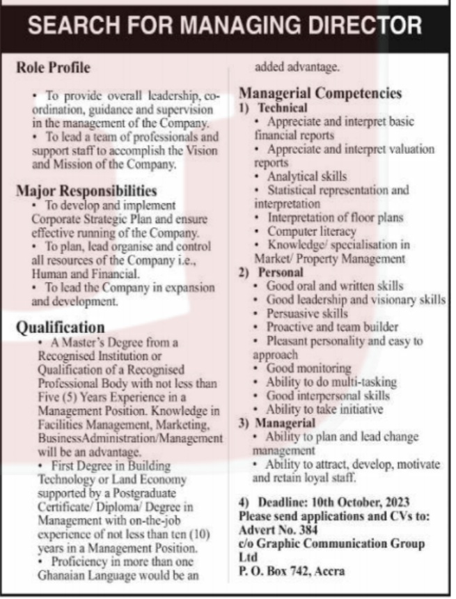 Prospective job seekers can find below the advertised jobs in the October 3, 2023, edition of Daily Graphic as published in the paper today.