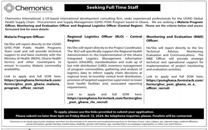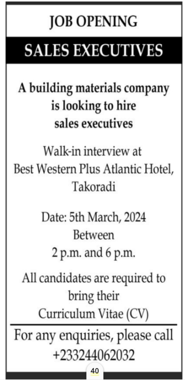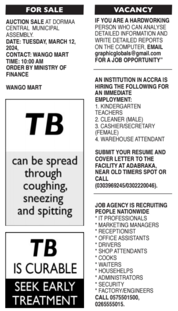 Prospective job seekers can find below the advertised jobs in the March 5, 2024, edition of Daily Graphic as published in the paper today.