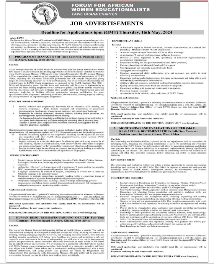 Prospective job seekers can find below the advertised jobs in the May 14, 2024, edition of Daily Graphic as published in the paper today.