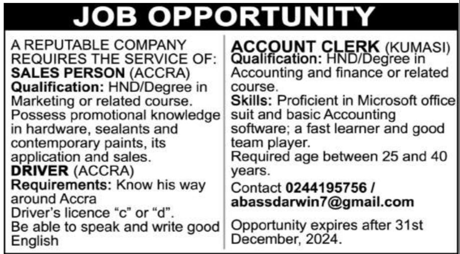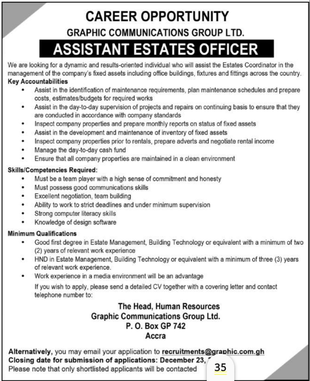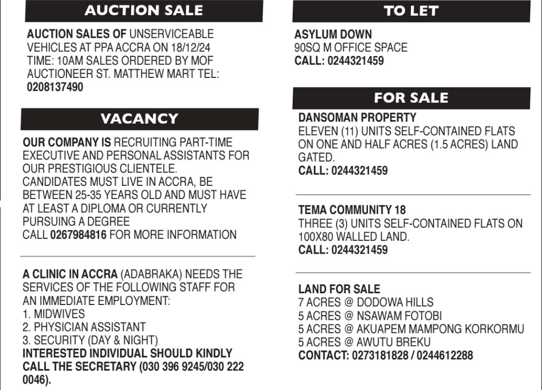 Prospective job seekers can find below the advertised jobs in the December 17, 2024, edition of Daily Graphic as published in the paper today.