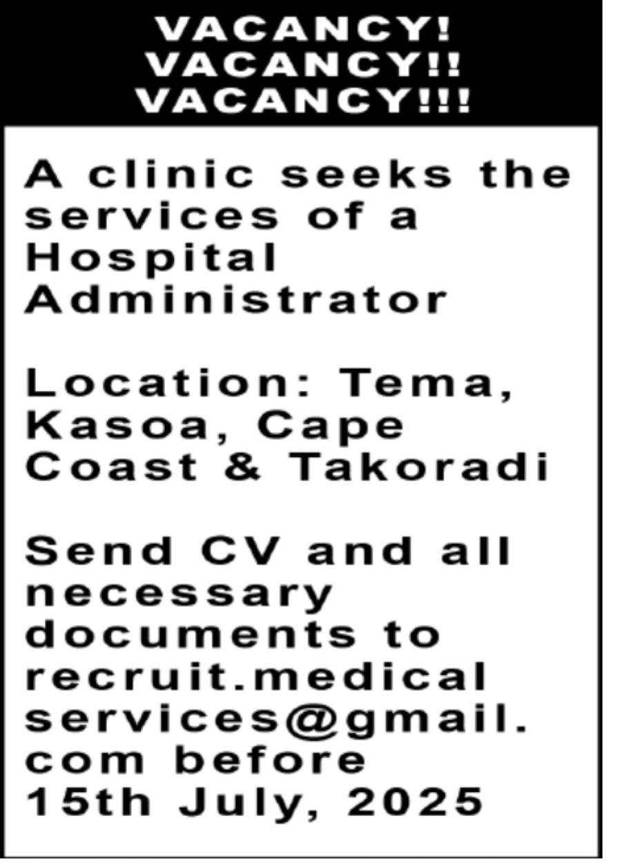 Prospective job seekers can find below the advertised jobs in the July 8, 2025, edition of the Daily Graphic as published in the paper today.