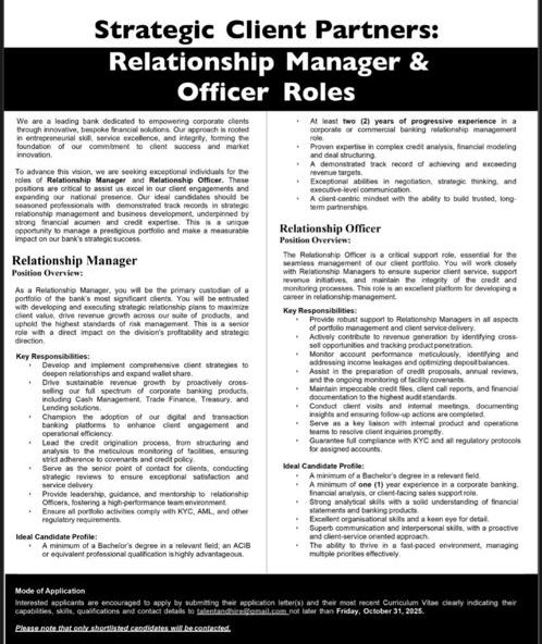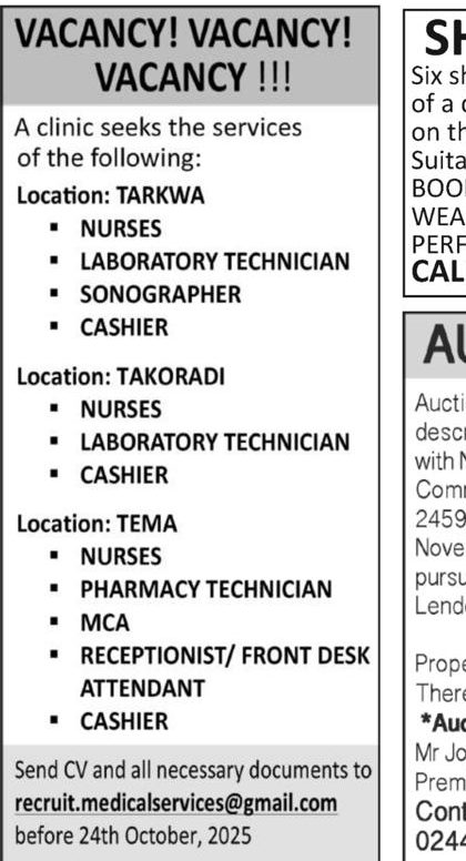 Prospective job seekers can find below the advertised jobs in the October 21, 2025, edition of the Daily Graphic as published in the paper today.
