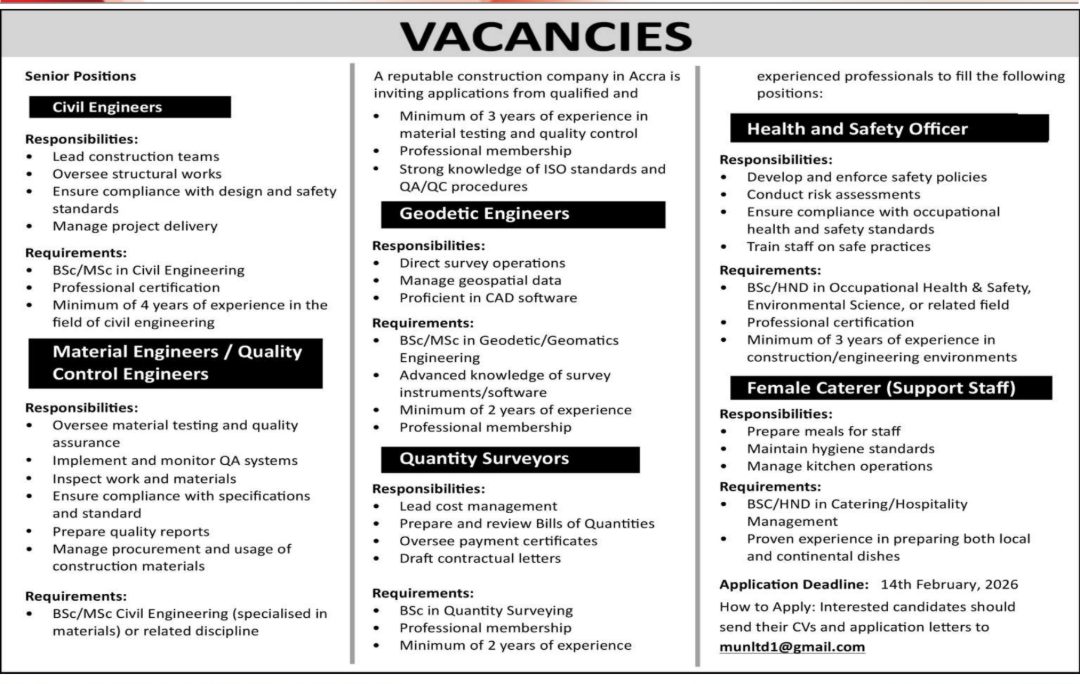 HeadlinesNews Tuesday: Advertised Jobs In Newspapers Today Story By: The Ghana Report SHARE Prospective job seekers can find some of the advertised online jobs below as of February 10, 2026, published today. Share This Article Facebook Whatsapp Whatsapp LinkedIn Leave a Comment Leave a Reply Cancel replyYour email address will not be published. Required fields are marked *Comment * Name * Email * Website Δ - Advertisement - Recent Updates We inherited over 440,000 Driver’s Licence backlog – DVLA Headlines News Leak damages 19th Century painting in latest Louvre setback World Better society if we ’embrace other cultures’ – Guardiola Sports Growth moderates in November 2025, as early Q4 indicators point to slower year-end growth Business Valentine’s day gift ideas: 10 unique gifts that speak louder than chocolate Lifestyle Cybersecurity threats in Ghana: A comprehensive analysis Opinion Samini’s ORIGIN8A storms Apple Music Ghana charts at No. 7 Entertainment Bagbin renews call for permanent Parliament House Headlines News Africa’s mineral wealth must no longer be a paradox without prosperity , says Prof. Denton as UN body releases new Report Business We want to keep pressure on league leaders- Hearts Coach states ahead of Kotoko Clash Sports
