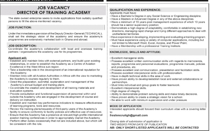 Prospective job seekers can find below the advertised job in the September 8, 2020 edition of Daily Graphic as published in the paper today.