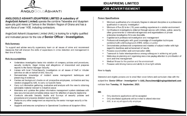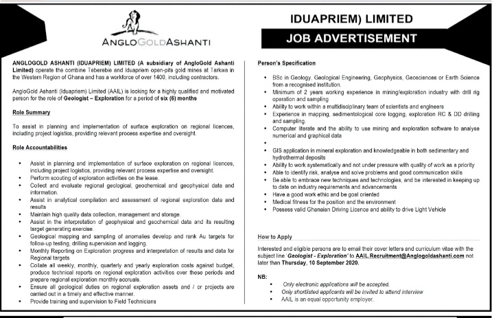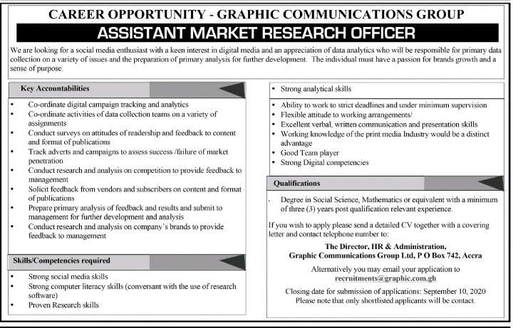 Prospective job seekers can find below the advertised job in the September 8, 2020 edition of Daily Graphic as published in the paper today.