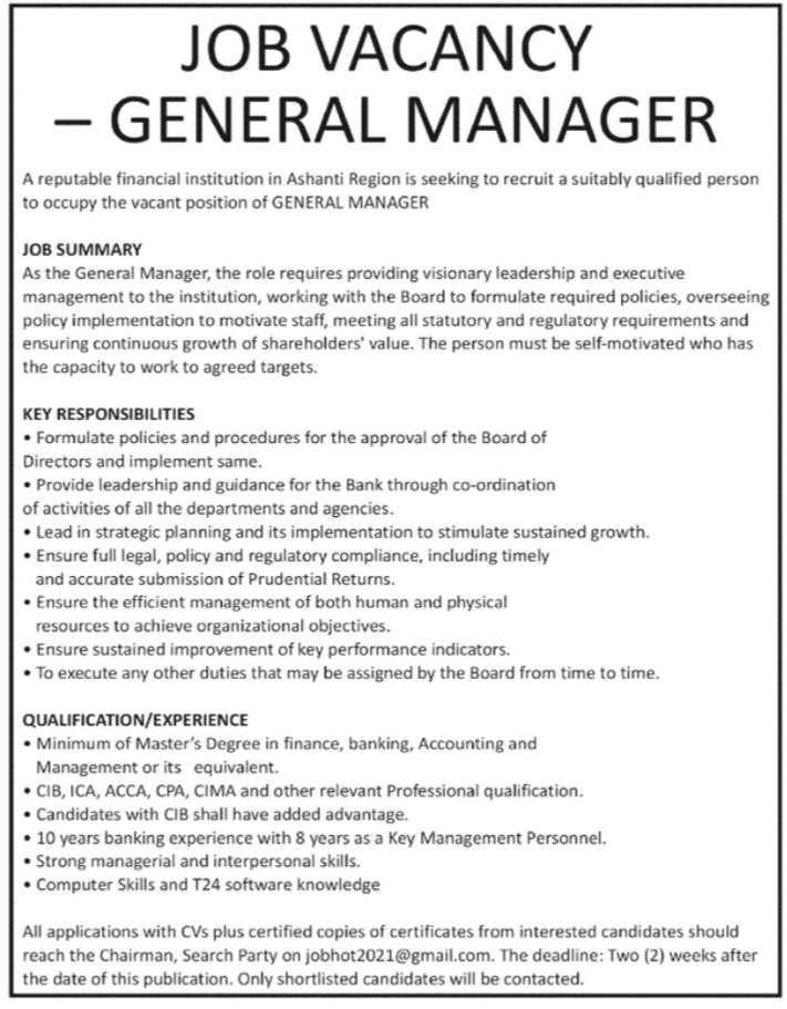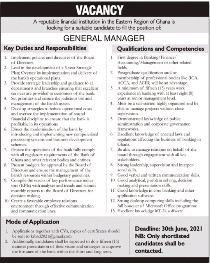Prospective job seekers can find below the advertised jobs in the June 1, 2021, edition of Daily Graphic as published in the paper today.