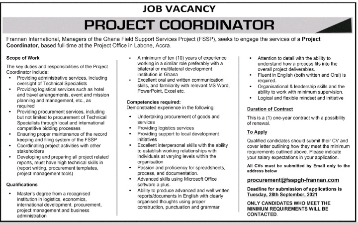 Prospective job seekers can find below the advertised jobs in the September 21, 2021, edition of Daily Graphic as published in the paper today.
