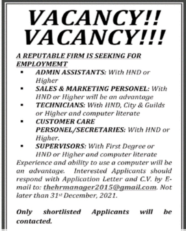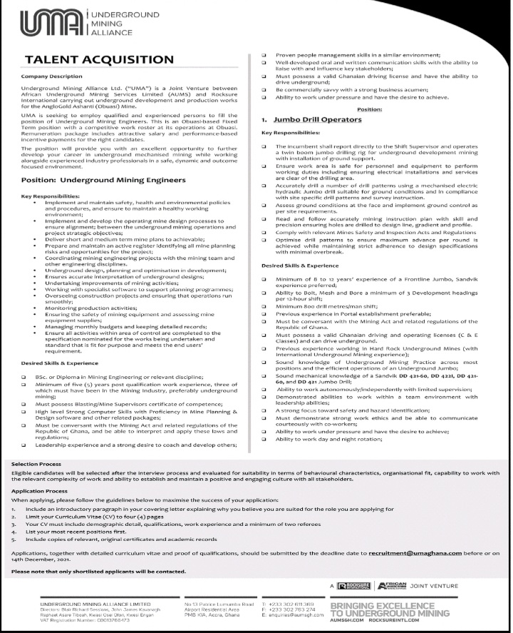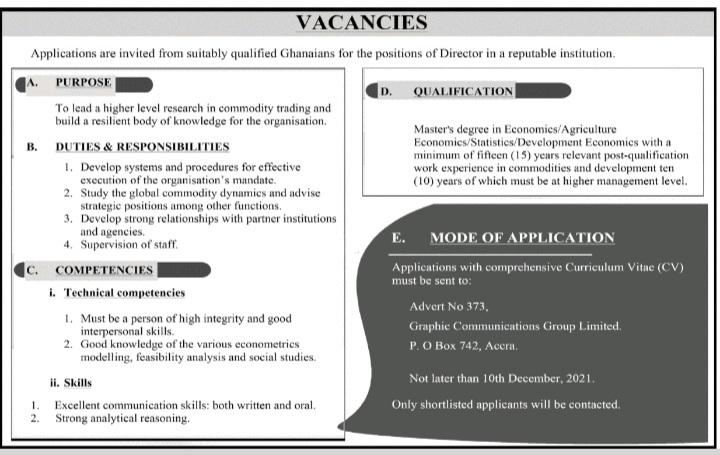 Prospective job seekers can find below the advertised jobs in the November 30, 2021, edition of Daily Graphic as published in the paper today.
