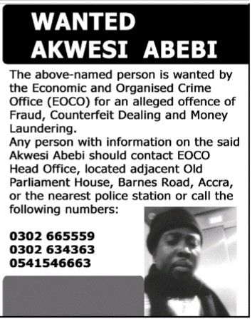EOCO is urging any person with information about the two persons to report to the nearest police station, the Daily Graphic of June 8, 2020, advertised.