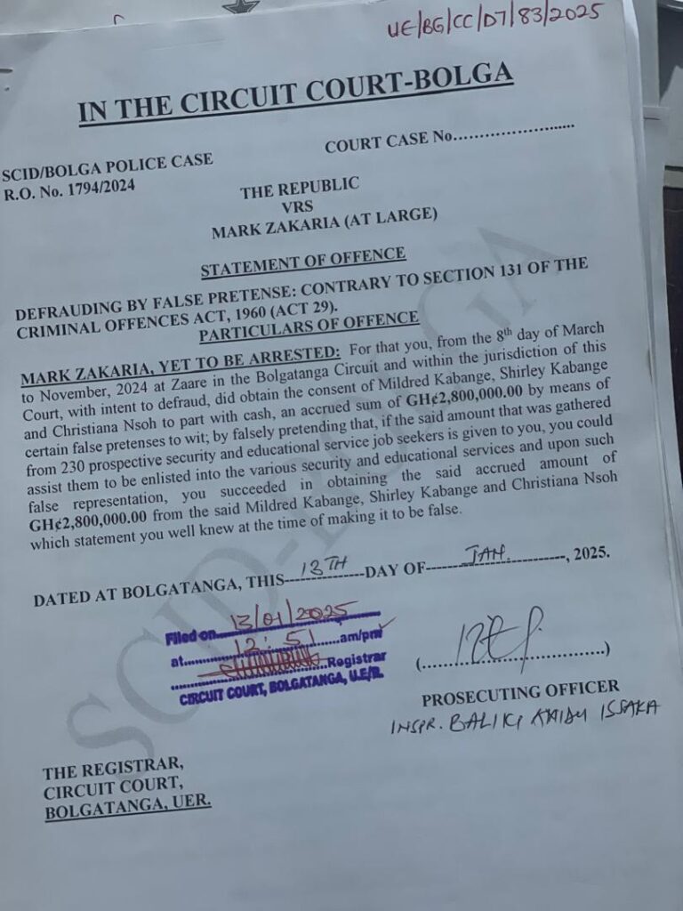 The police in the Upper East Region have launched a manhunt for Mark Zakaria, a suspect facing allegations of defrauding 230 job seekers out of GHS 2.8 million.