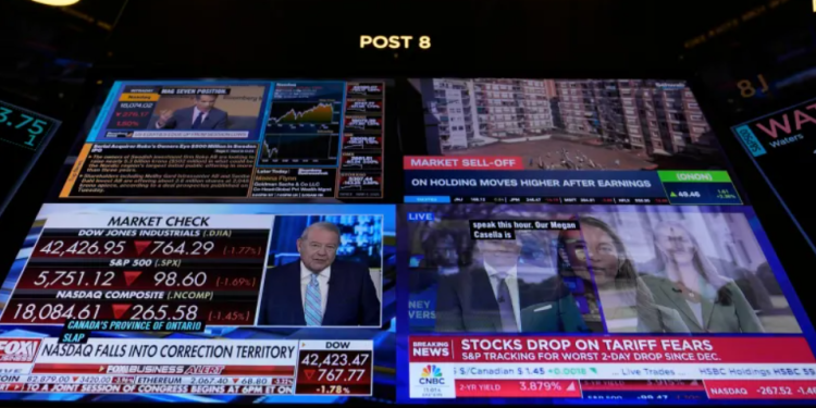 The United States’ stock market has shed more than $1.7 trillion in value after US President Donald Trump declined to rule out the possibility the economy could enter a recession this year.