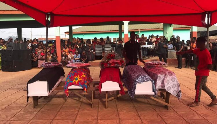 Family and friends of the children could not hold back their tears when the bodies were laid at the Nkawkaw community durbar grounds for a final farewell.