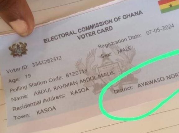 This follows the circulation of a viral image in which a registration slip indicates that the bearer registered at Kasoa in the Central Region, yet the District is captured as Ayawaso North in the Greater Accra Region.