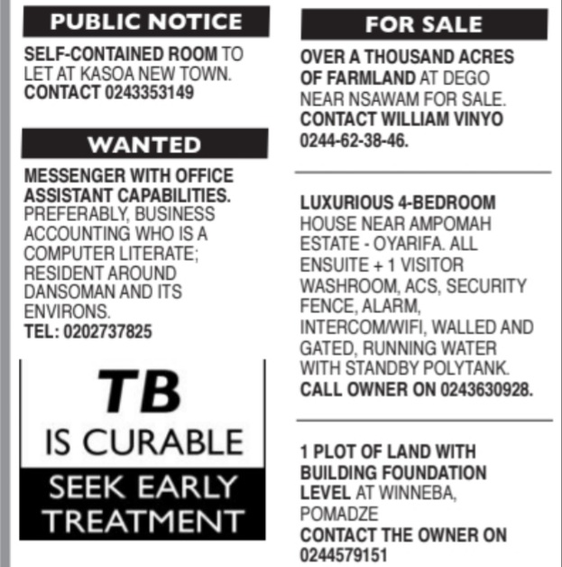 Prospective job seekers can find below the advertised jobs in the December 6, 2023, edition of Daily Graphic as published in the paper today.