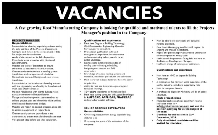 Prospective job seekers can find below the advertised jobs in the December 20, 2023, edition of Daily Graphic as published in the paper today.
