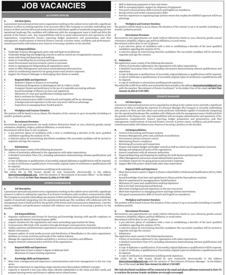 Prospective job seekers can find below the advertised jobs in the January 17, 2024, edition of Daily Graphic as published in the paper today.