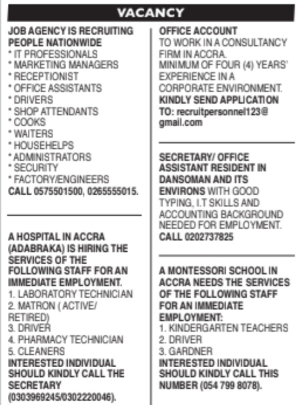 Prospective job seekers can find below the advertised jobs in the January 31, 2024, edition of Daily Graphic as published in the paper today.