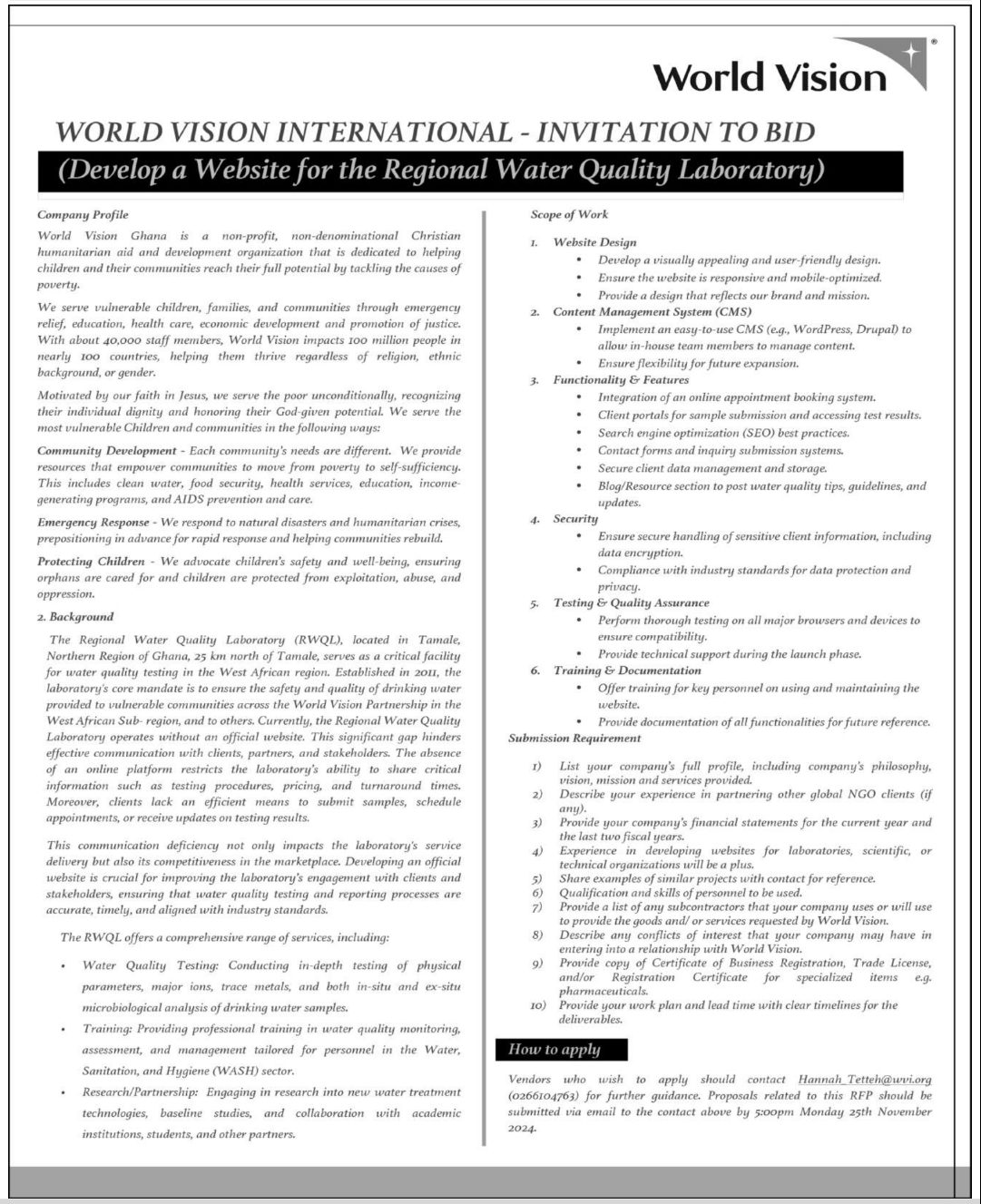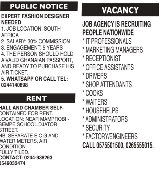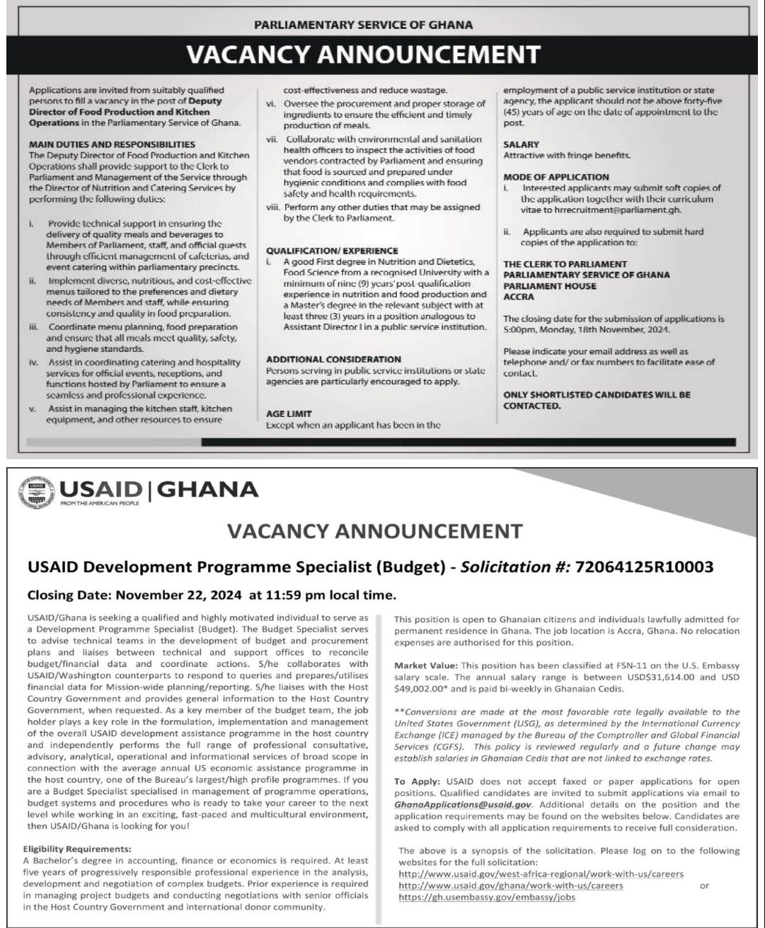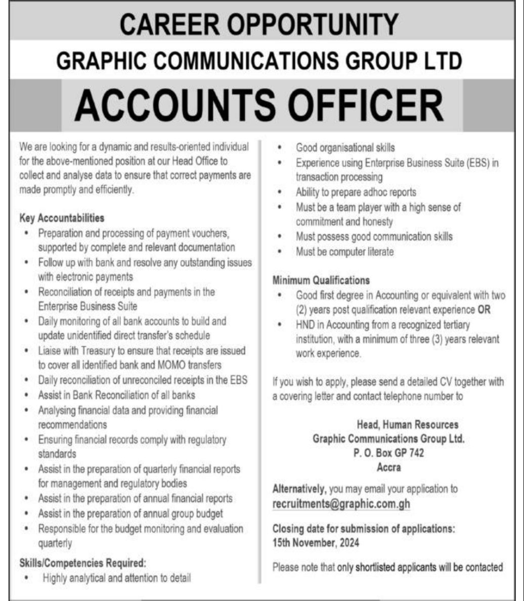 Prospective job seekers can find below the advertised jobs in the November 13, 2024, edition of Daily Graphic as published in the paper today.