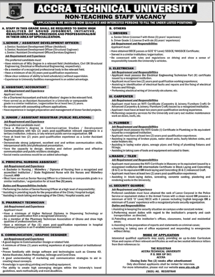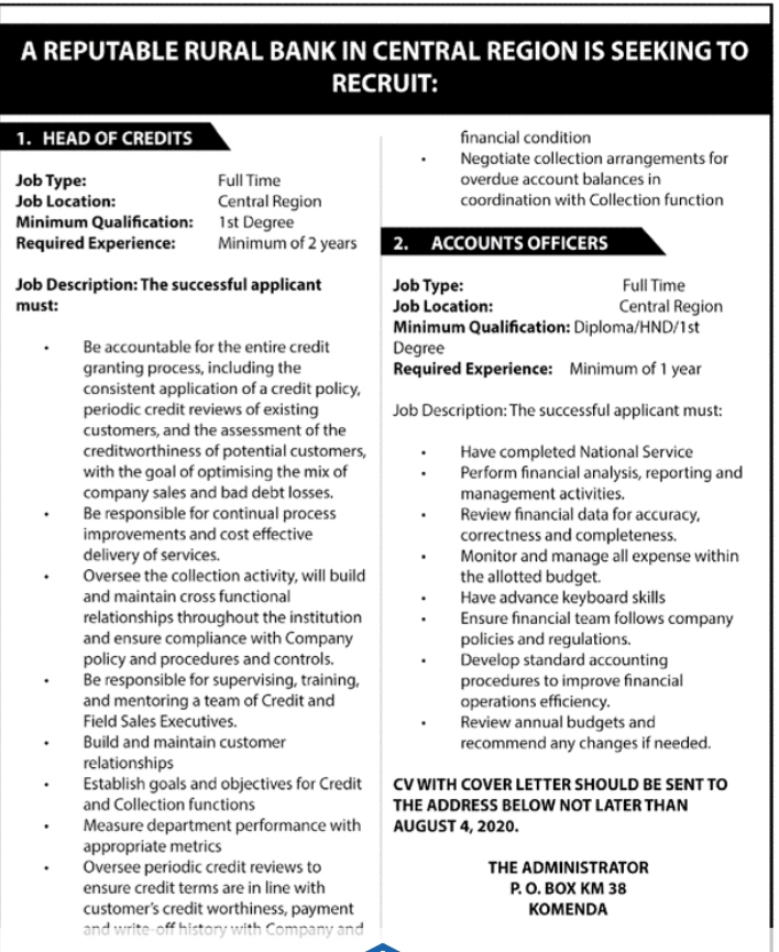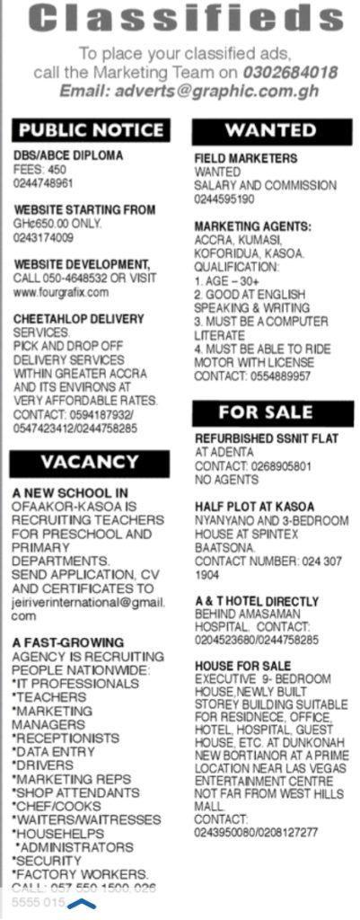Prospective job seekers can find below the advertised jobs in the July 29, 2020 edition of Daily Graphic as published in the paper today.