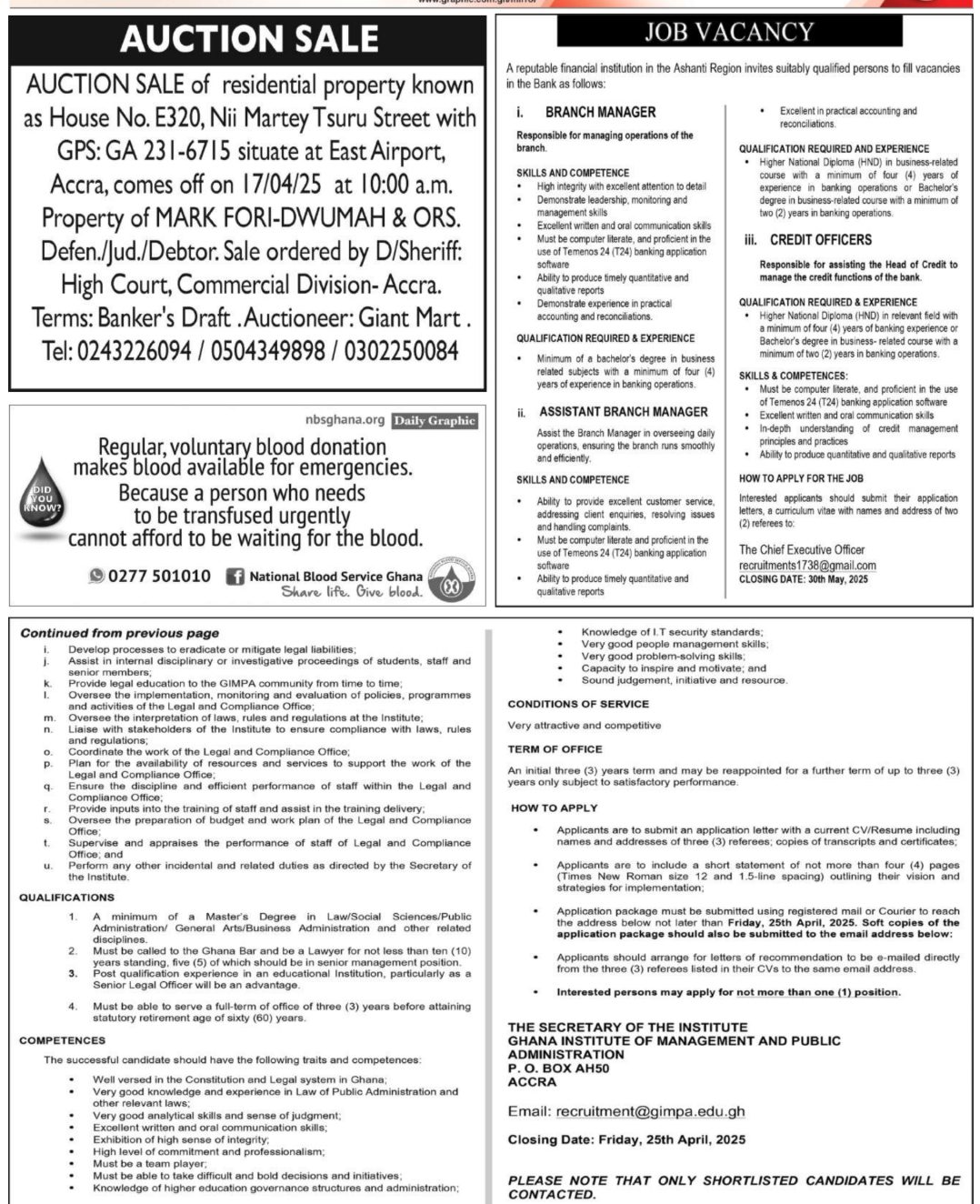 Prospective job seekers can find below the advertised jobs in the April 16, 2025, edition of the Daily Graphic as published in the paper today.
