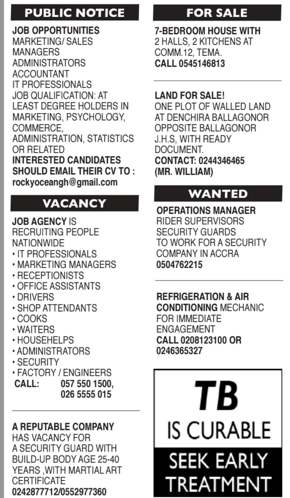 Prospective job seekers can find below the advertised jobs in the April 30, 2025, edition of the Daily Graphic as published in the paper today.