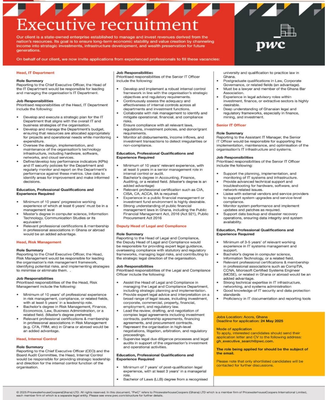 Prospective job seekers can find below the advertised jobs in the May 14, 2025, edition of the Daily Graphic as published in the paper today.