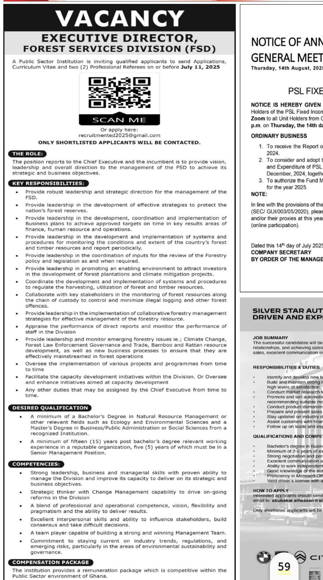 Prospective job seekers can find below the advertised jobs in the July 2, 2025, edition of the Daily Graphic as published in the paper today.