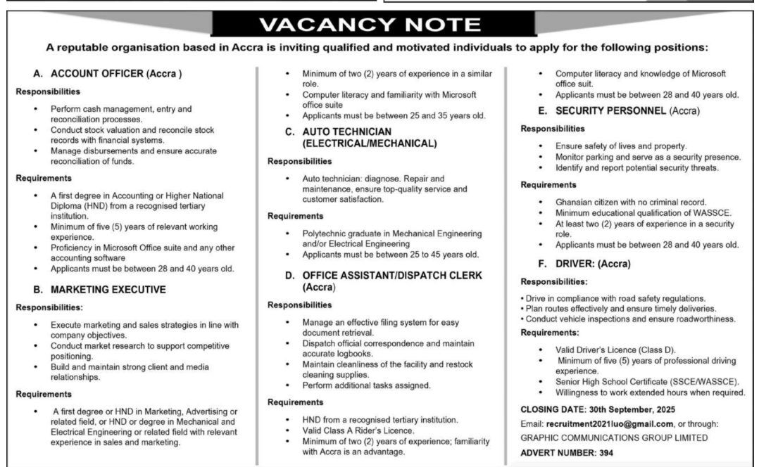 Prospective job seekers can find below the advertised jobs in the July 23, 2025, edition of the Daily Graphic as published in the paper today.