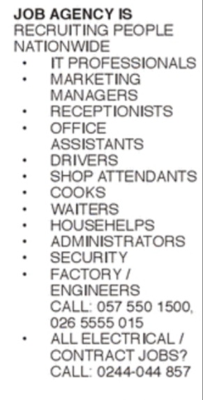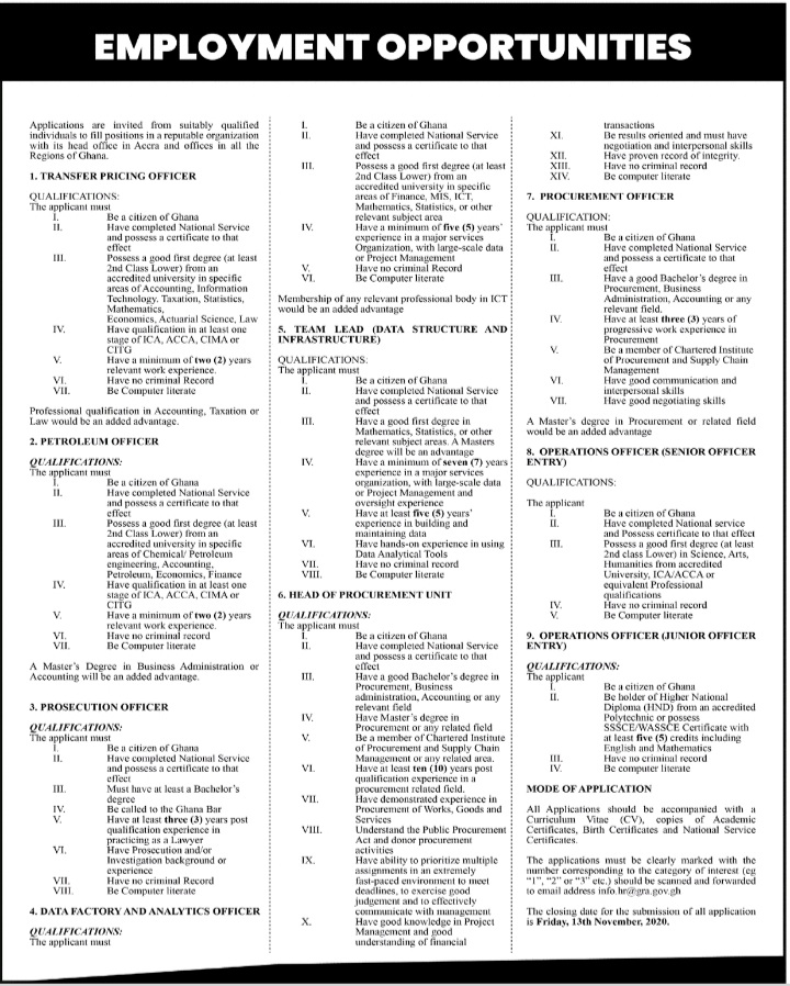 Prospective job seekers can find below the advertised jobs in the November 11, 2020 edition of Daily Graphic as published in the paper today.