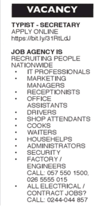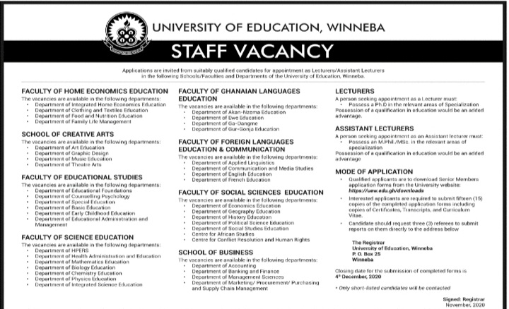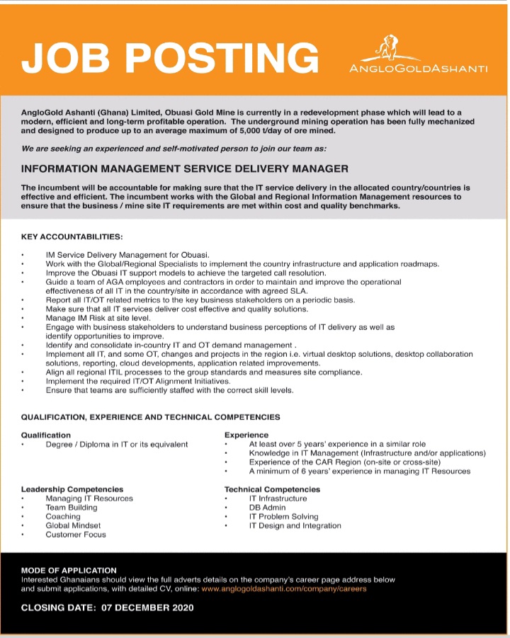 Prospective job seekers can find below the advertised jobs in the November 25, 2020 edition of Daily Graphic as published in the paper today.