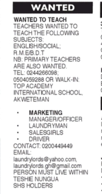 Prospective job seekers can find below the advertised jobs in the January 27, 2021, edition of Daily Graphic as published in the paper today.