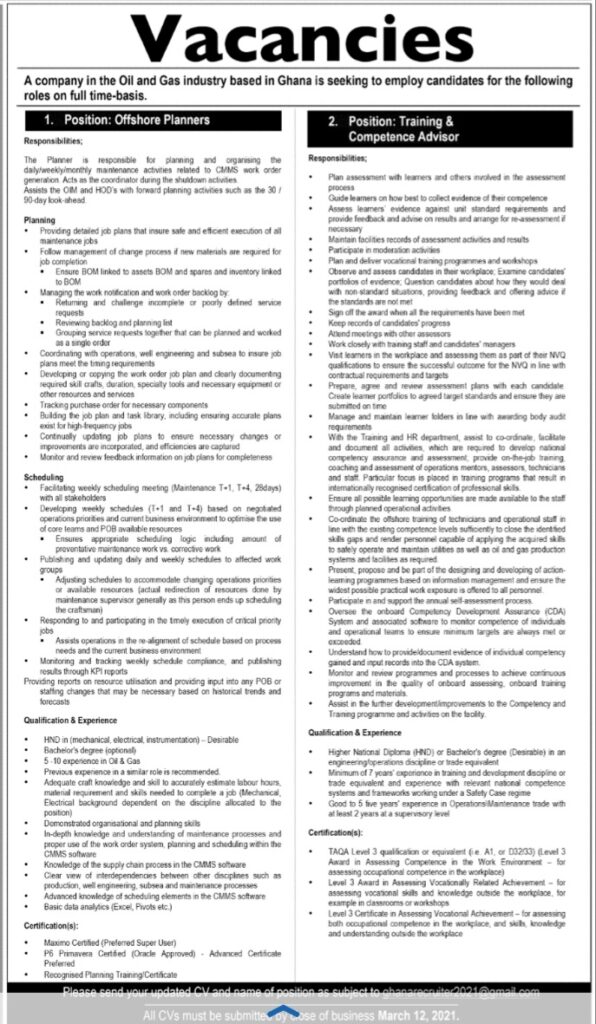 Prospective job seekers can find below the advertised jobs in the March 10, 2021, edition of Daily Graphic as published in the paper today.