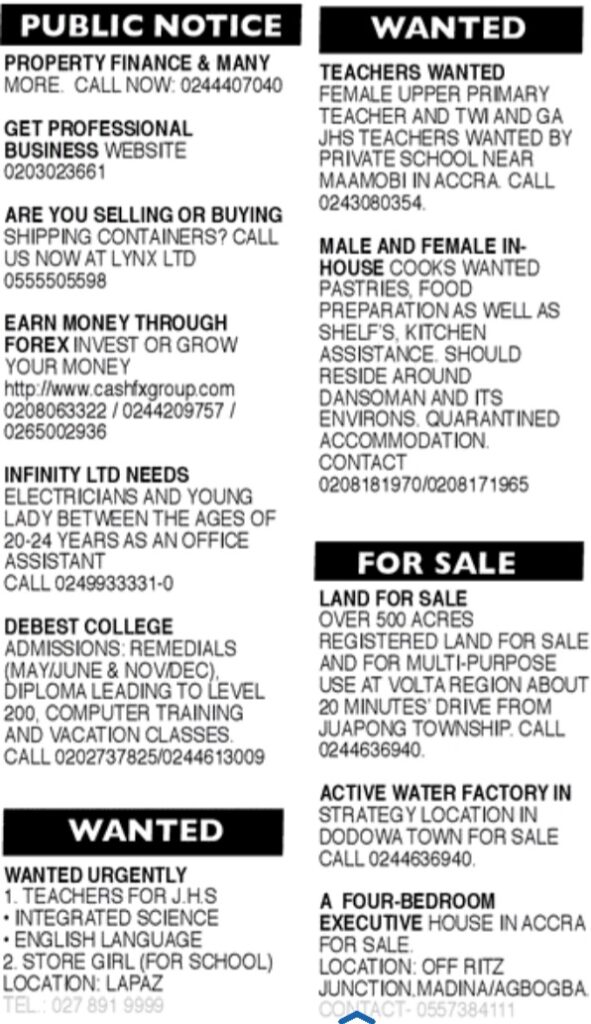Prospective job seekers can find below the advertised jobs in the March 24, 2021, edition of Daily Graphic as published in the paper today.