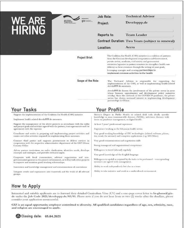 Prospective job seekers can find below the advertised jobs in the March 24, 2021, edition of Daily Graphic as published in the paper today.