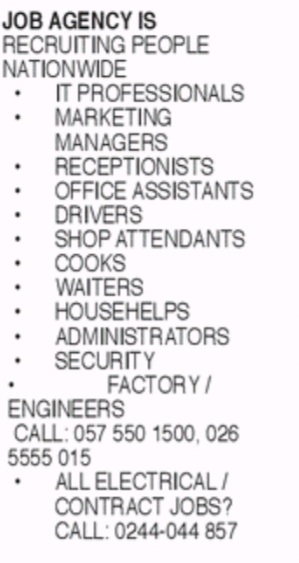 Prospective job seekers can find below the advertised jobs in the May 12, 2021, edition of Daily Graphic as published in the paper today.