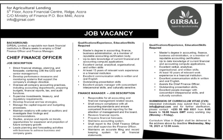 Prospective job seekers can find below the advertised jobs in the May 12, 2021, edition of Daily Graphic as published in the paper today.