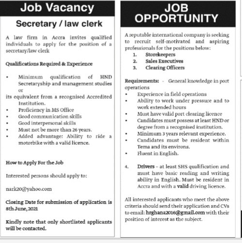 Prospective job seekers can find below the advertised jobs in the May 26, 2021, edition of Daily Graphic as published in the paper today.